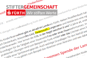 Die Kinderfeuerwehr Oedenreuth wurde in diesem Jahr von der Stiftergemeinschaft Fürth, Hypovereinsbank/Unicredit und